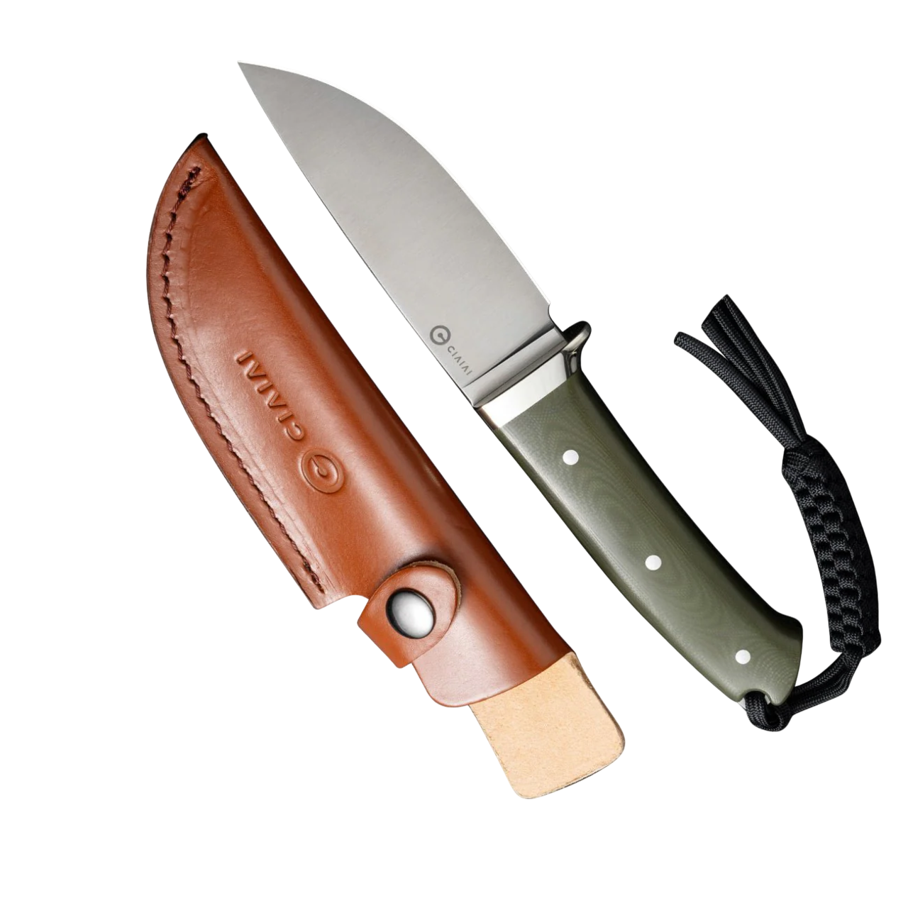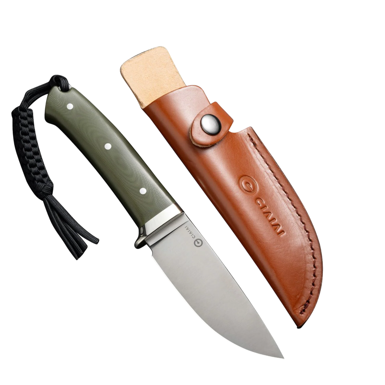 The CIVIVI Cloud Peak is a rugged outdoor fixed blade. It features a sharp satin-finished Nitro-V steel blade, an OD Green G10 handle, and a classic nickel-silver guard for a secure, reliable grip.