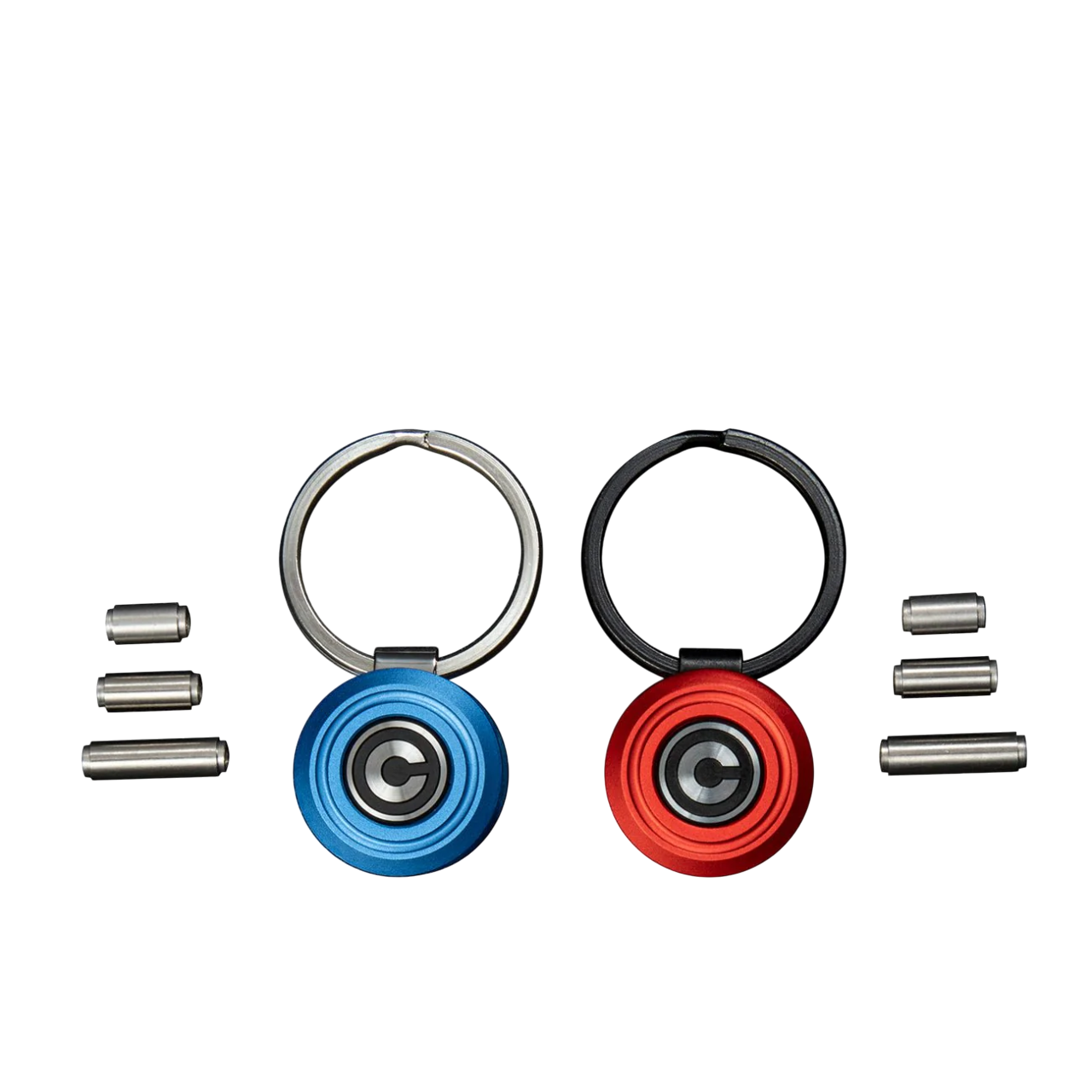 The CIVIVI Key Coin is a sleek and colorful key organizer. This red and blue aluminum set keeps your keys secure, tidy, and easily accessible, eliminating pocket clutter.