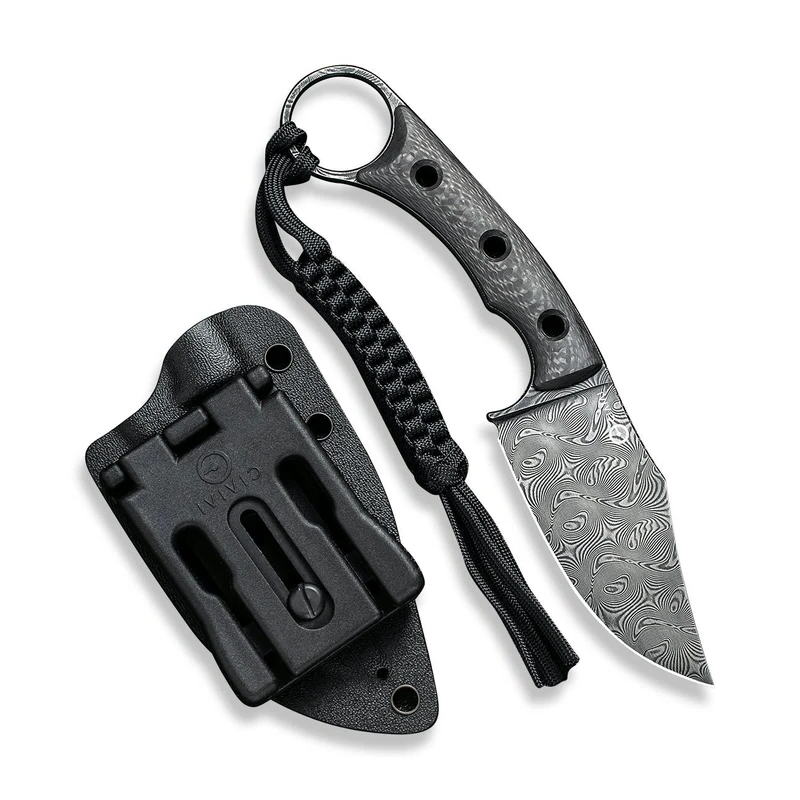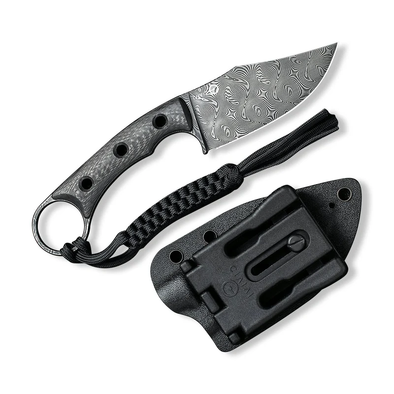 The CIVIVI Midwatch is a sleek, modern gentleman’s knife. It features a stunning black hand-rubbed Damascus blade and a refined twill carbon fiber handle for lightweight, elegant carry.