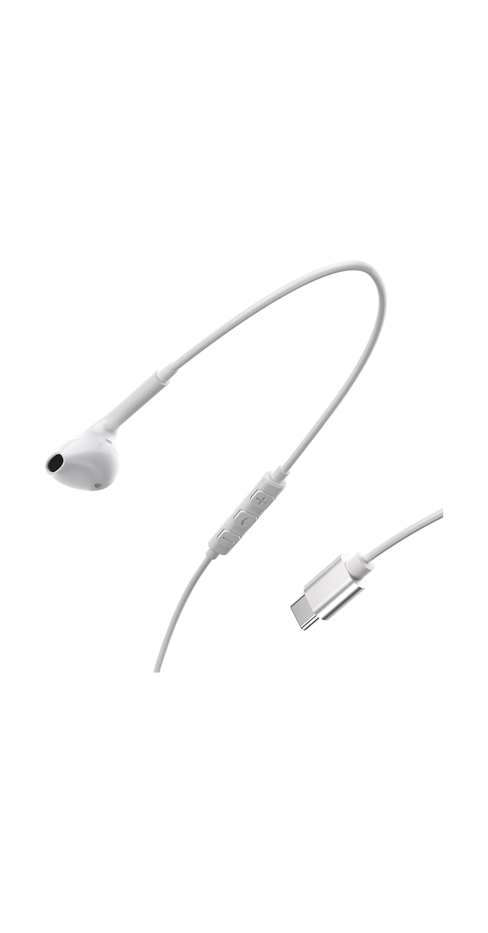 The Powerology Type-C Mono Earphone is a single earbud with an in-line microphone, designed for clear audio and hands-free communication via a direct USB-C connection.