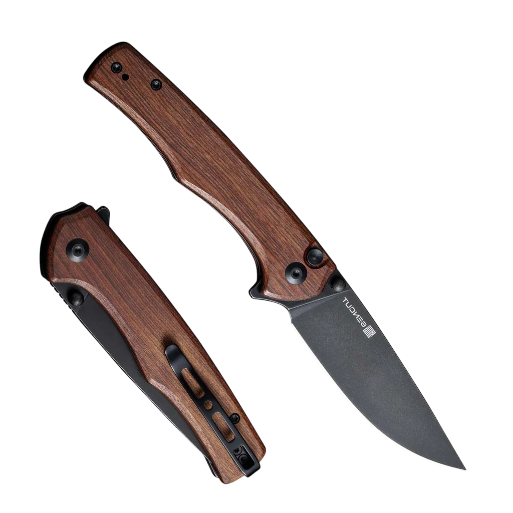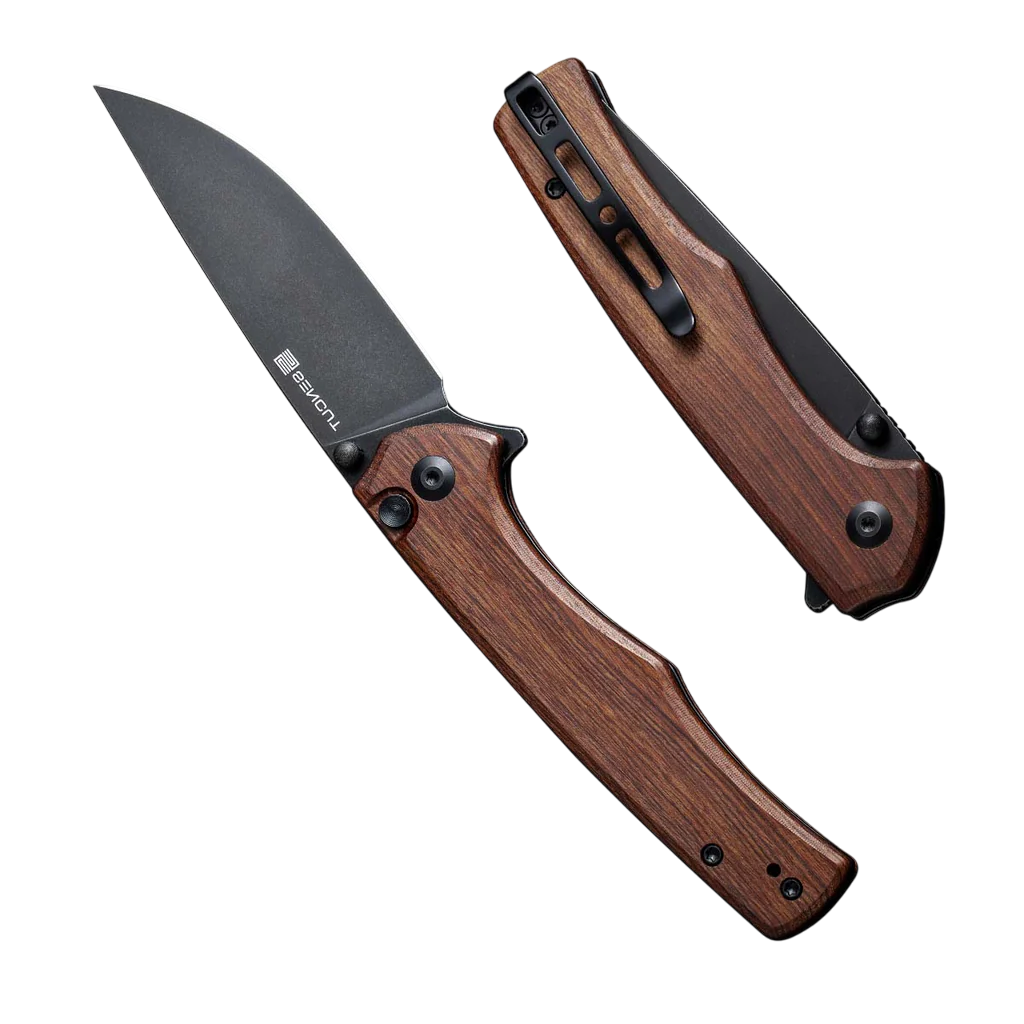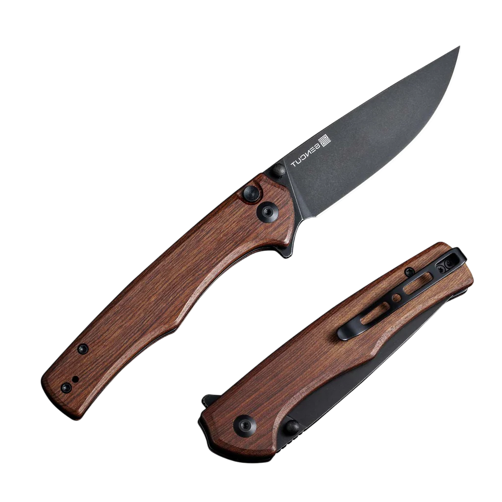 The Sencut Crowley is a sleek and reliable EDC flipper. It features a durable black stonewashed D2 blade and a warm, natural Guibourtia wood handle for classic style and everyday performance.