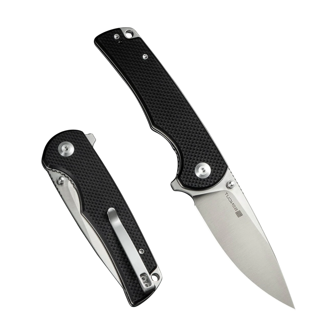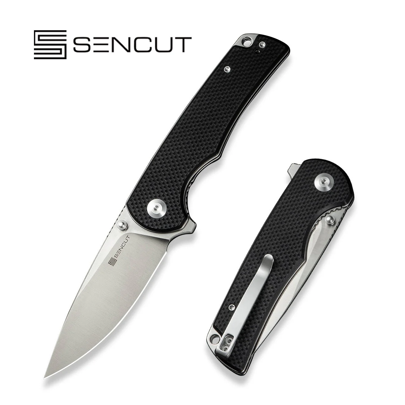 The SENCUT Praktisk S24019-1 features a black coarse G10 handle paired with a satin-finished 9Cr18MoV blade, offering a rugged, reliable, and practical design for everyday carry.