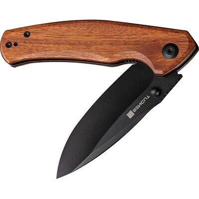 The Sencut Slashkin is a sleek, modern flipper. It features a durable black D2 blade and a warm, natural Guibourtia wood handle for a perfect blend of rugged performance and classic style.
