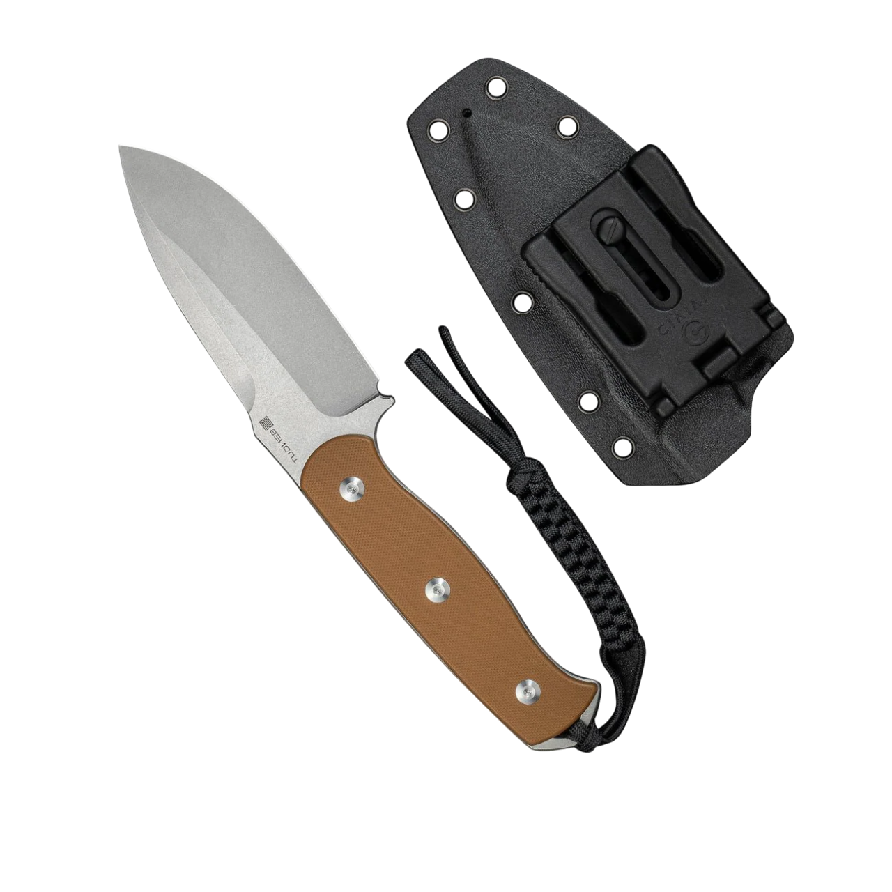 The SENCUT Toxodon S24036-3 features a brown G10 handle paired with a stonewashed 9Cr18MoV blade, delivering a rugged, reliable, and ergonomic design for everyday carry.