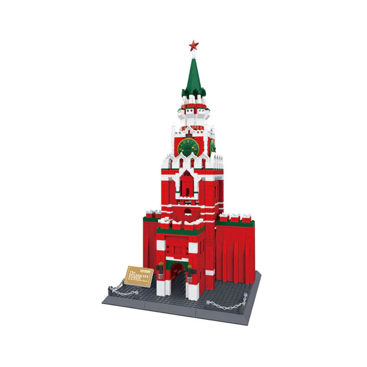 The WANGE 5219 Spasskaya Tower Model is a detailed architectural replica of the iconic tower located on the eastern wall of the Moscow Kremlin. This model, part of the “World’s Greatest Architecture” series, offers enthusiasts a chance to recreate one of Russia’s most recognizable landmarks. With over 1,000 high-quality ABS plastic bricks, the set provides a challenging and rewarding building experience. The finished model showcases the tower’s distinctive red brick construction, white stone accents, and traditional decorative elements, including its prominent clock face. Ideal for collectors and architecture enthusiasts, this set combines historical significance with intricate design.