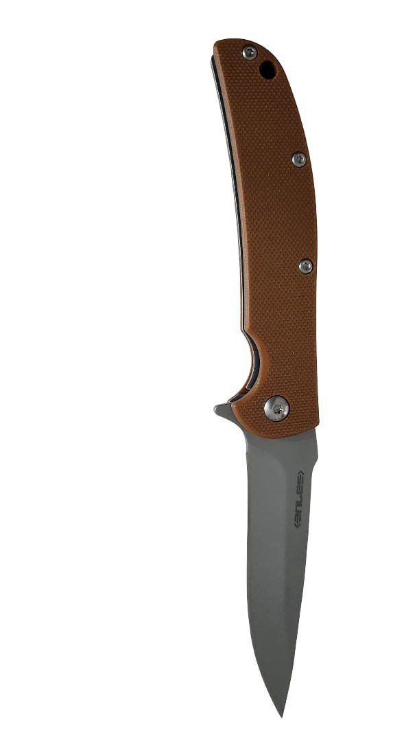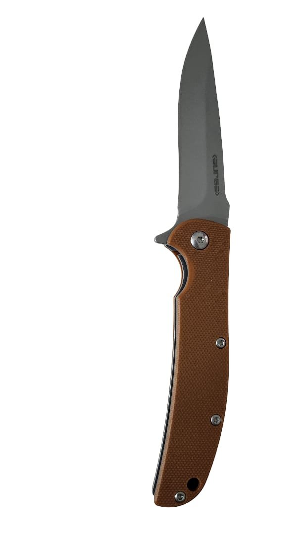 The Surge Knife (Model SUR-7110-BR) is a durable folding knife with a brown handle, designed for everyday carry and reliable performance.