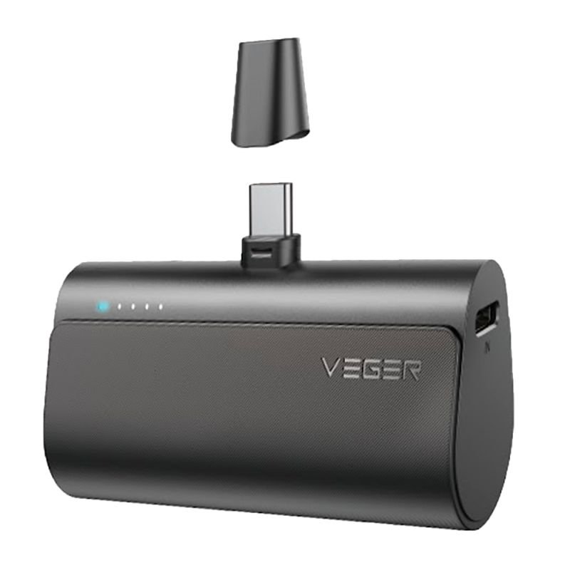 Veger Power Bank 5000mAh (Model: VP-0556P) – Compact and portable with 20W PD fast charging, iOS-compatible output, and LED indicator for easy power monitoring.