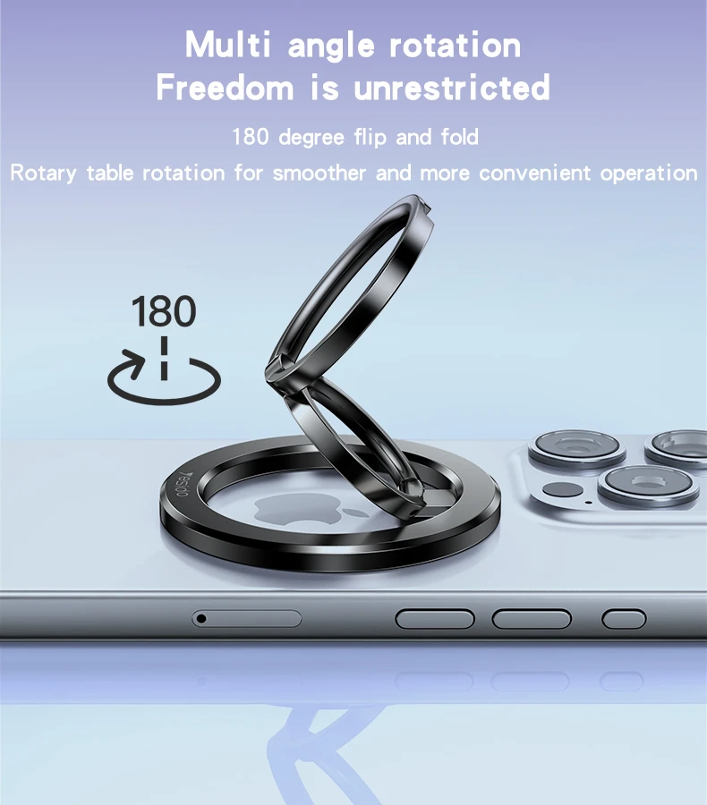 🔄 360° Rotating Ring – Adjustable angle for comfortable viewing.